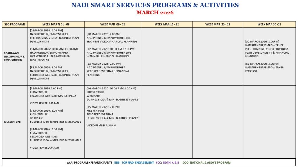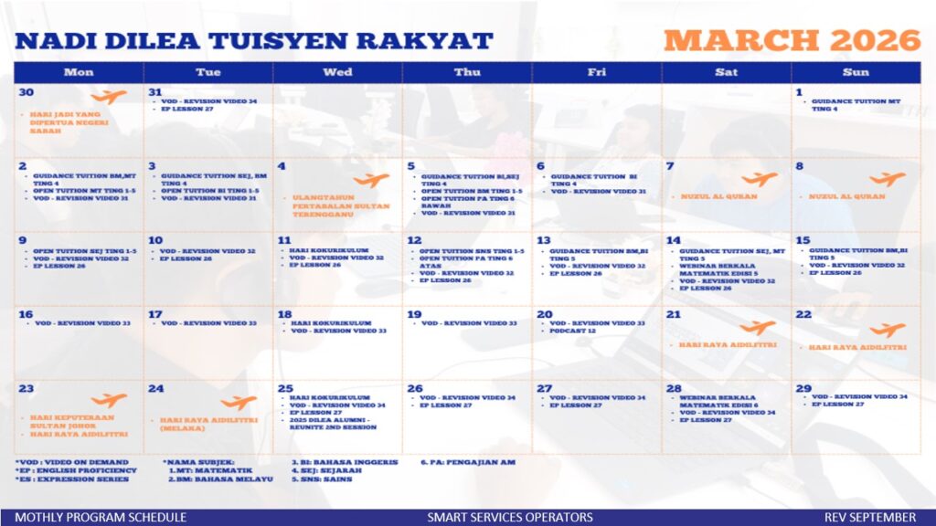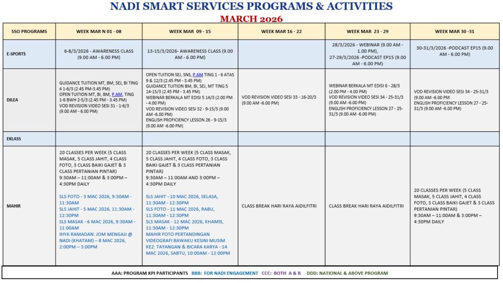 JADUAL AKTIVITI & PROGRAM PERKHIDMATAN PINTAR BULAN MAC 2026