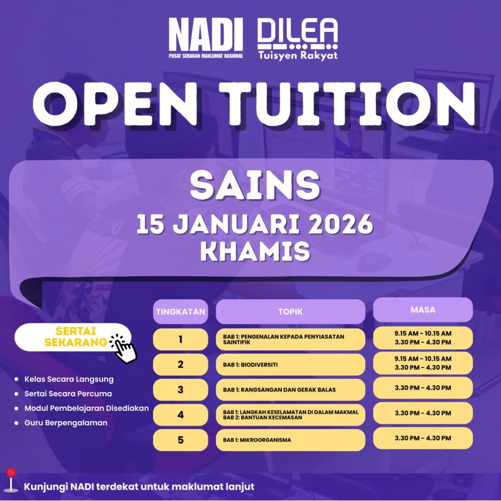 #NADI #DILEA #OpenTuition #TuisyenRakyat #Sains #Sesi2026 #KelasPercuma